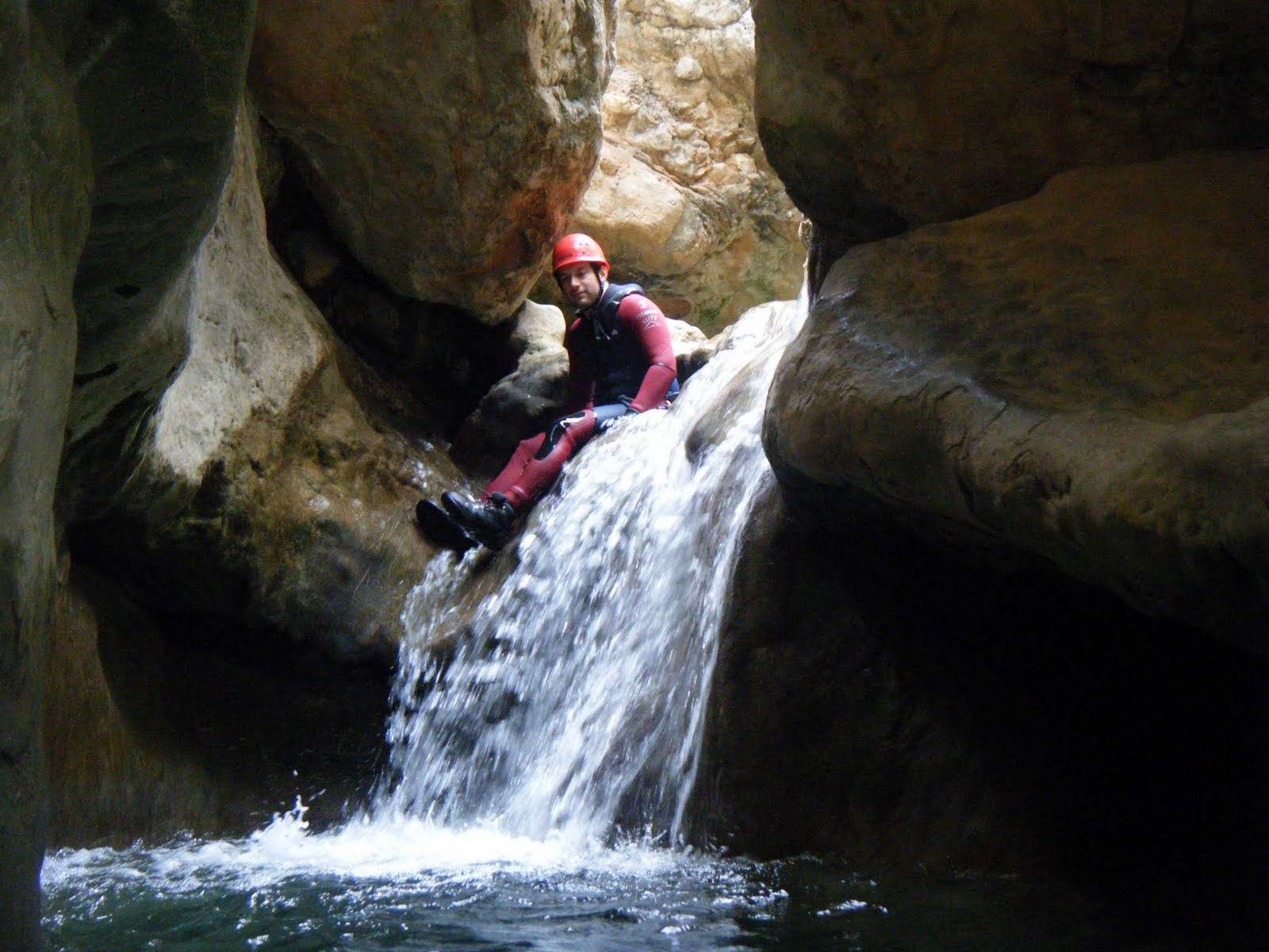 Ya no nos lo pensamos más y nos lanzamos al vacio. Solo puedo definir este rapel volado con una palabra: IMPRESIONANTE. Va al lado de la cascada y desciende la vertical del porche de una cueva, de tal manera que el agua, la luz y la cueva forman un entorno y un contraluz espectácular. Sin duda alguna, es uno de los rápeles más bonitos que he hecho.